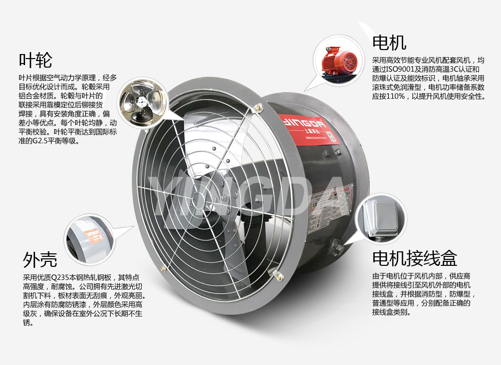 ——防爆型:電機為隔爆型、葉片為鋁合金,適用于易燃、易爆氣體的環(huán)境中,防爆等級為EXdIIBT4、EXdIICT4。