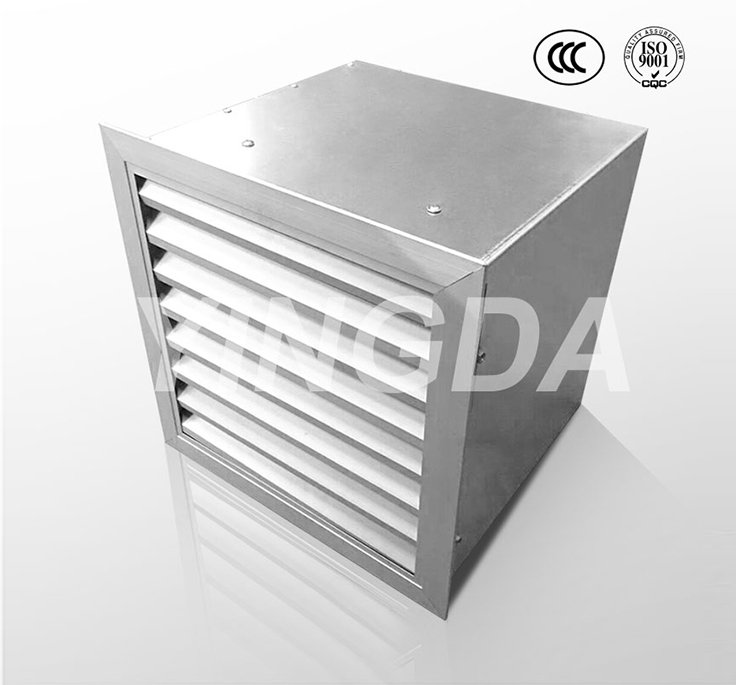 DFBZ型壁式軸流風機葉輪采用寬葉片大弦長、空間扭曲、傾斜式葉形,可在低速時達到所需風量、風壓降低風機噪聲,風機機殼外層方形,內層為圓形,可進一步降低風機噪聲。風機安裝于墻體內,靠墻側裝有鋁合金防雨百葉,可以防止室外雨水和自然風向室內倒灌。